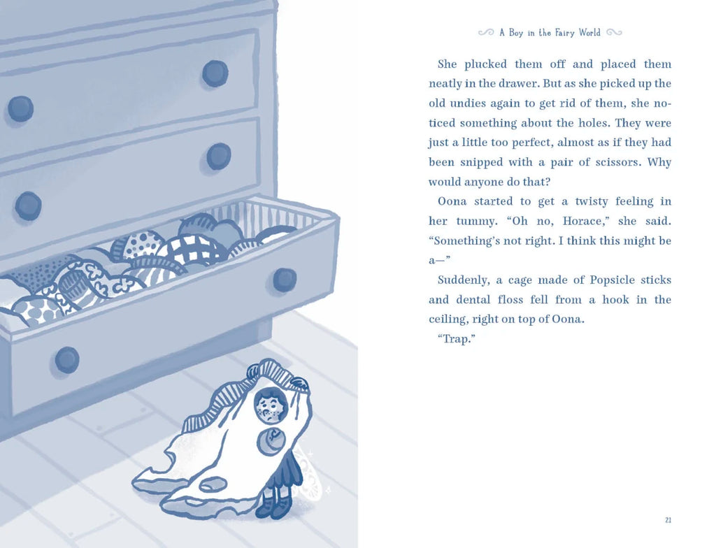 Oona loves being the Underwear Fairy, which means she gets to deliver magical safety undies with wedgie power that keeps human children from falling down and hurting themselves. But when she gets trapped in the human world by Marco, a boy who wants to take a photo of her to prove fairies are real, she’s horrified—don’t let humans see you is one of fairydom’s most important rules!