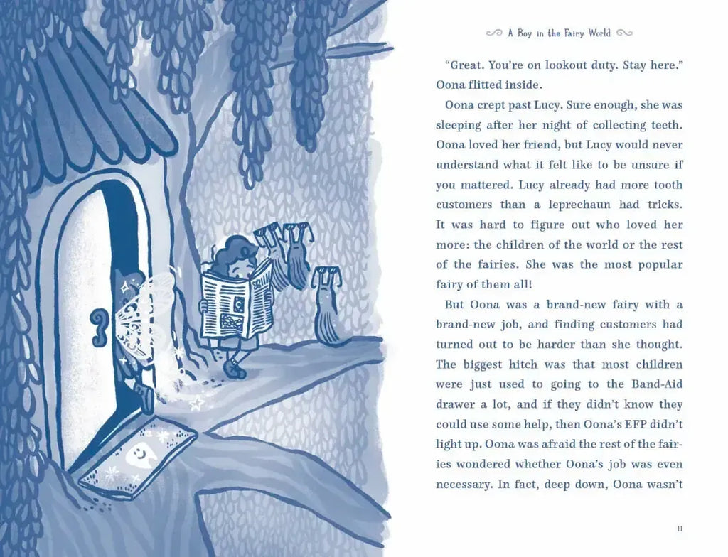 In the second book of this hilarious, highly illustrated chapter book series, lovable Underwear Fairy Oona has to call on all of her sideways magic when she accidentally leads a human boy up to Blackberry Bog. Text and illustrations are printed in blue!