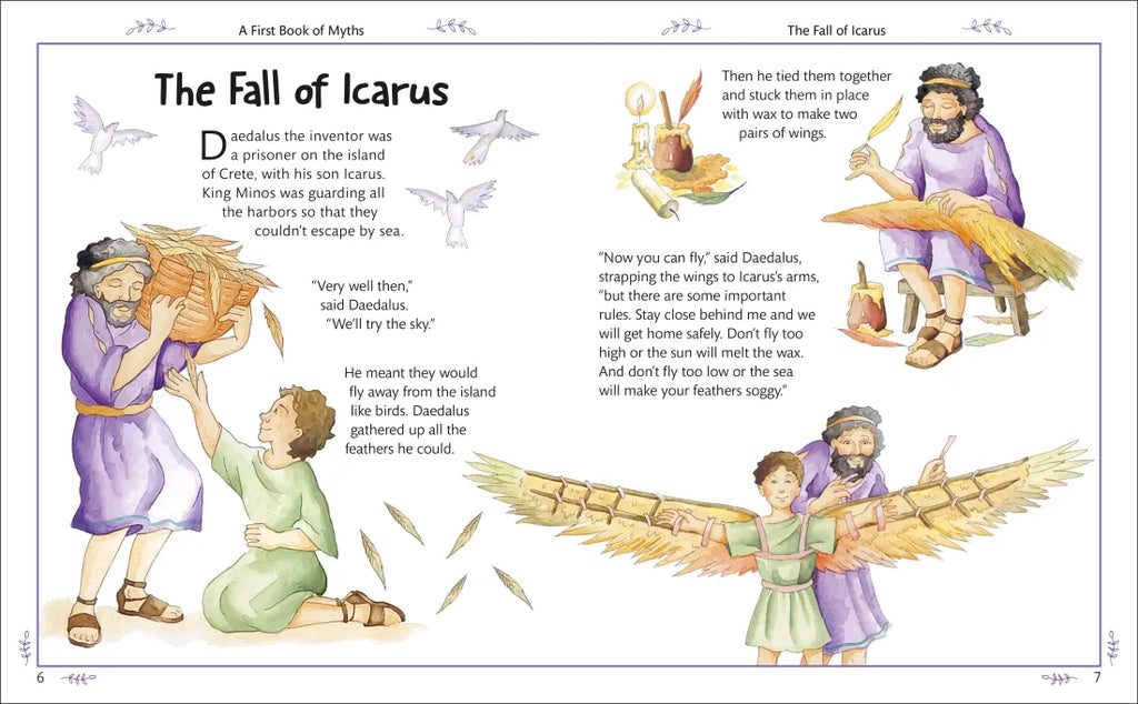 A First Book of Myths contains fourteen well-known myths accompanied by delightful illustrations. From the story of Icarus – the boy who flew too close to the Sun – to the tale of why dogs dislike cats, this enthralling collection is the perfect introduction to stories that continue to stand the test of time.