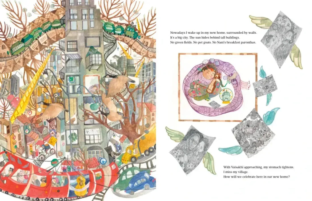 When a Sikh family moves from their village in India to a faraway city on the other side of the world, a girl yearns for her grandmother's hugs, her goat Ramu, and the lush fields filled with yellow flowers and wheat. How will they celebrate Vaisakhi in her new and unfamiliar surroundings?