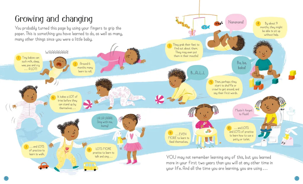 Young children will enjoy this lively look at all the incredible things the human body can do, what it needs to stay healthy and how to look after it. The wide-ranging topics such as senses, germs, feelings, exercise, food, sleep and toothcare are all brought to life by the delightful illustrations. There's a celebration of different body shapes and sizes and information about why bodies look different including skin colour, disability, hair type and age. The book also explores how bodies grow and change as children get older.