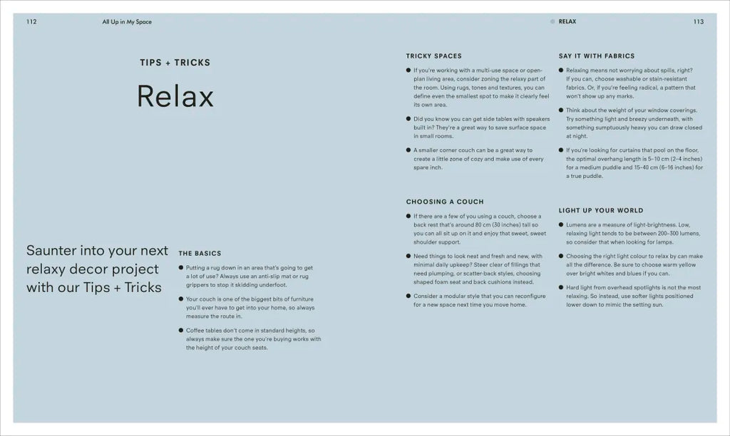 In this beautiful book, from the authors and creators of the award-winning blog All Up In My Space, Robyn Donaldson and Emma Hopkinson share their abundance of knowledge on interior design to help you figure out how to make your space your own. Learn about how to decorate a rental property without losing your deposit, discover how to switch things up in your home without having to change everything, and identify what type of interior design style suits you.