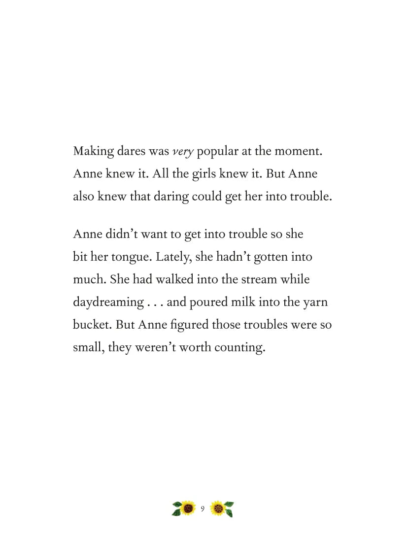 The fifth book in an early chapter book series inspired by Anne of Green Gables, starring the spirited Anne Shirley as she agrees to a dangerous dare and learns a valuable lesson about courage.
