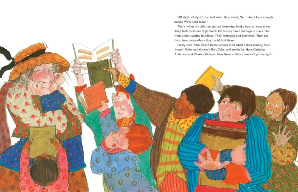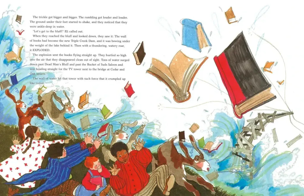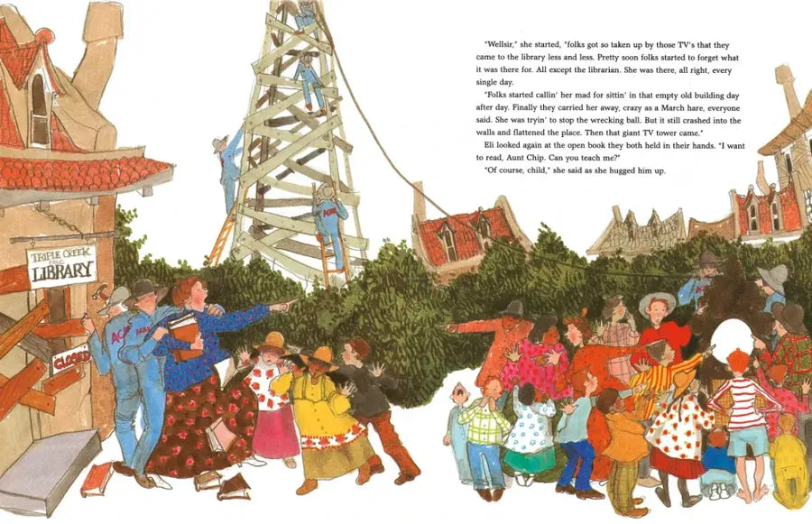 It's only when Aunt Chip learns that everyone in town has forgotten how to read that she decides she can rest no longer. She teaches Eli to read, and the other children are so amazed at this magic that they want to learn too. But when they go to the old dam to get more books, they and the other townspeople get a surprise they never expected.