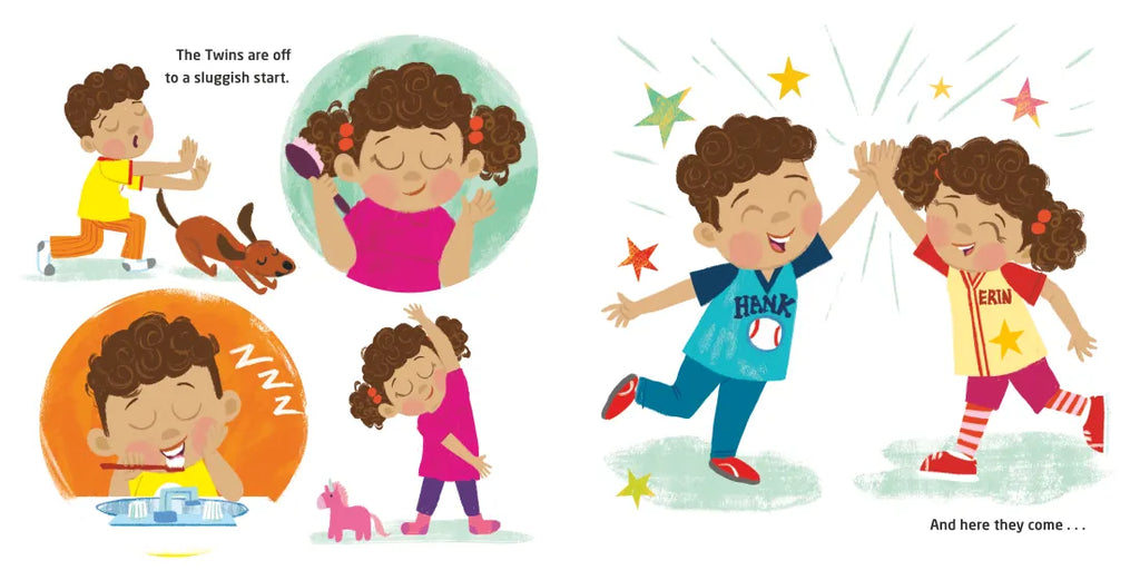 It’s the first day of school at Grand Slam Elementary, and there is much to do before the Twins can step up to the plate! After putting on their uniforms, fueling up for the day, and doing an equipment check, the kids are ready to slide into first period. Opening day is full of curveballs, but the innings fly by until the kids return to home base, excited to do it all again tomorrow!