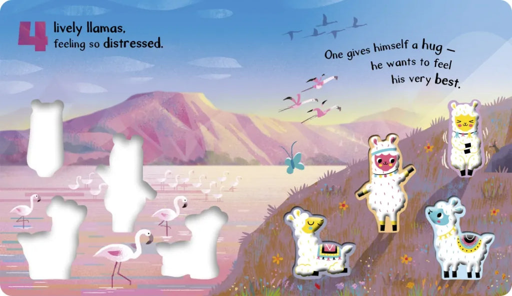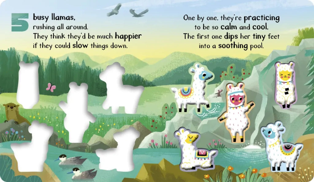 This rhyming countdown book encourages children to slow things down and find their inner calm! The adorable, tactile llamas peeking through the pages are perfect for little hands.