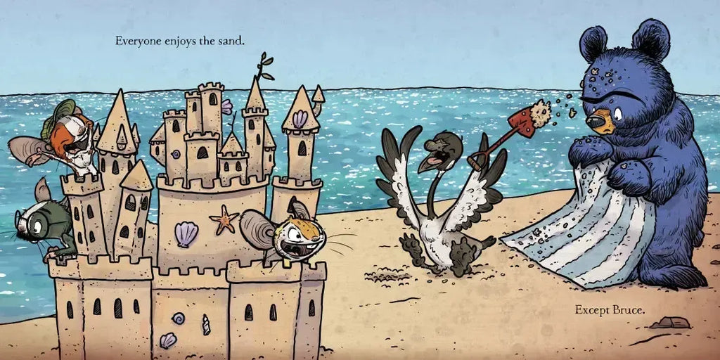 It’s beach day in Soggy Hollow! Everyone is enjoying fun in the sun – everyone, that is, except for Bruce. It's too hot, too sandy, and too windy! Bruce’s favorite thing about summer? Doing nothing. In the shade. Where it’s cool. Bruce’s second favorite thing about summer? When it turns to fall.