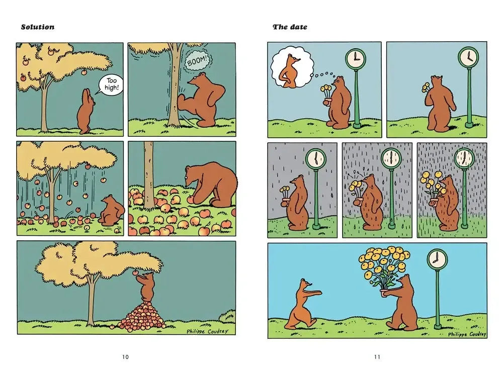 Explore the world through the eyes of Benjamin, a bear who takes his silly way of doing things very seriously. In the third book about Benjamin's adventures, author PHILIPPE COUDRAY continues to delight readers by bending the rules of common sense and breaking the laws of physics. Pull up a chair, grab a friend, and open your mind—today's forecast is for BRAIN STORMS!