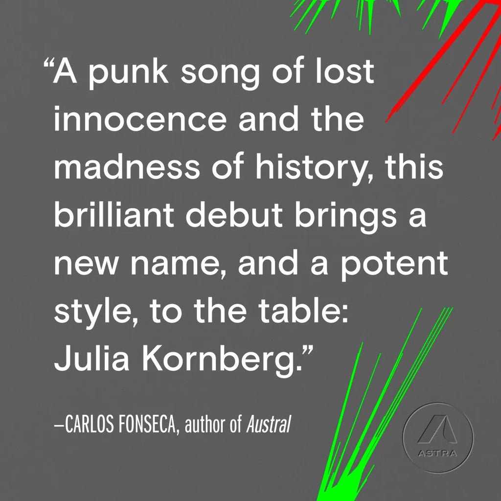 Defiant and dexterous, percussive and percolating with violent light, Berlin Atomized is Julia Kornberg’s napalm-ic debut—a tale about the end of the world, as told by the clear-eyed youth to which that world had been promised.