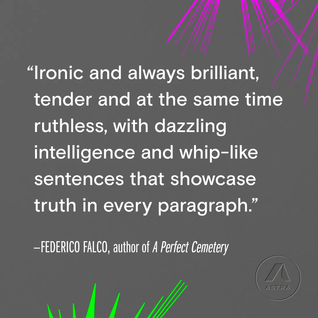 Berlin Atomized begins in Buenos Aires of the early 2000s with the self-baptisms of Nina Goldstein. She bathes too frequently, washing with fervor and repeating: “I am not asleep.” She grows up partying and taking undeserved siestas, while her eldest brother Jeremías is drawn into the city’s powder keg music scene, and the middle sibling, Mateo, learns of his terminal illness and prepares to join the IDF. Though Argentina faces the worst economic crisis in its history, the Goldsteins are being reared in a newly developed gated community that displaces working class families. Each sibling rehearses their escape from the capitalist Eden of their birth, unaware that the gated community will soon be underwater, and their family scattered all over the earth.