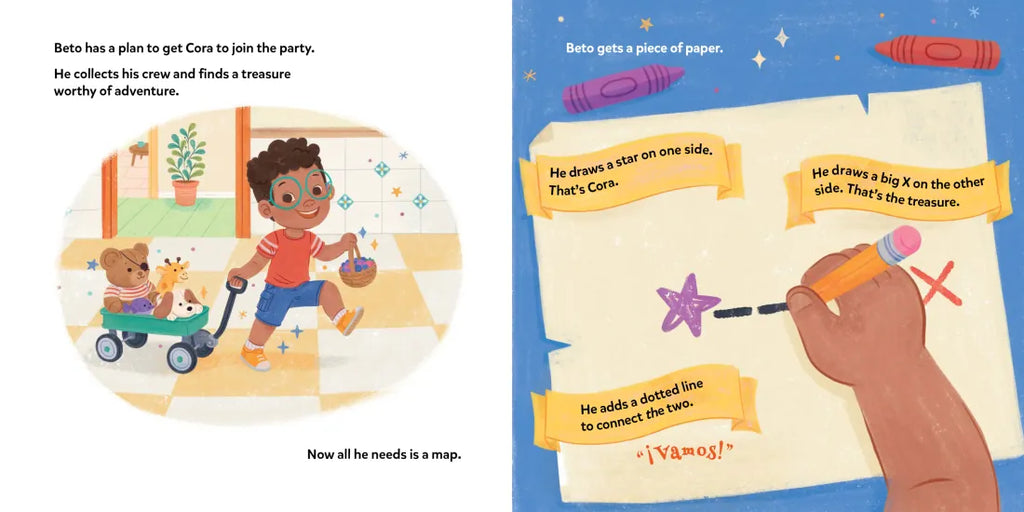 Beto wants to play tea party with Cora, but his big sister just wants to be a pirate. To get Cora on board, Beto makes a map to a delicious hidden treasure. But Cora ends up in the wrong place! Will Cora find the treasure before Beto eats it all? A playful exploration of mapping, featuring Chicanx (Mexican American) characters and a glossary of Spanish words.