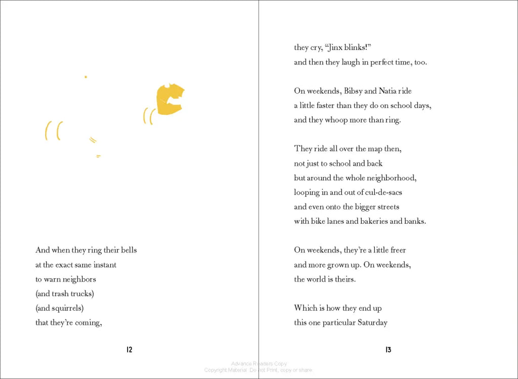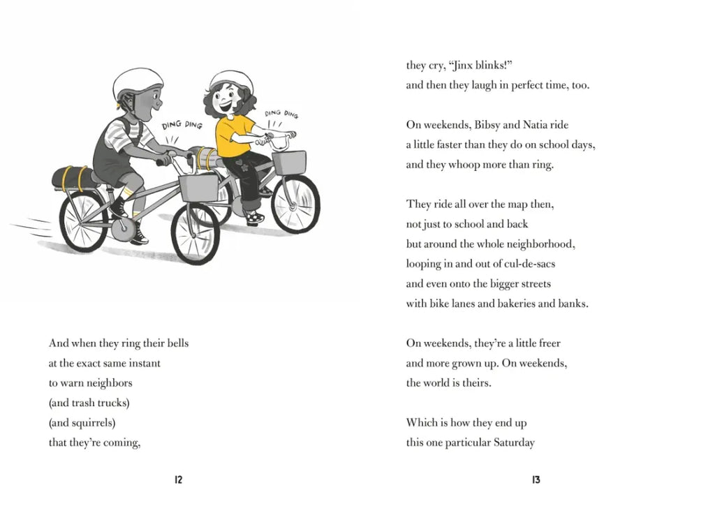 Most things are easy-peasy, regular-pegular for Bibsy Cross. She loves her parents, her cat, her best friend, Natia. She loves school and the library. And she loves riding her bike. Sometimes, she pretends it's her chariot.