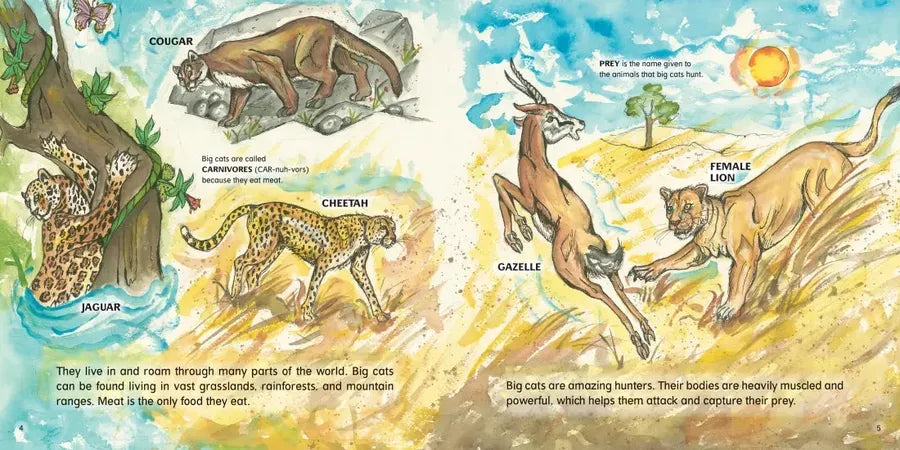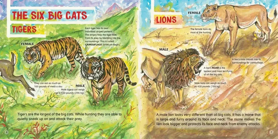 The bigger the cats, the bigger the fun! Learn about leopards, lions, and more in this vibrantly-illustrated guide–and what you can do to protect their species.