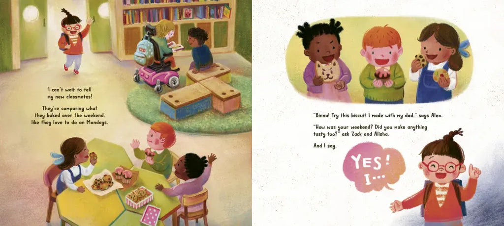 But with her sister's encouragement and the support of her classmates, Binna finds the right words (and snack) to share about her life in Korea.