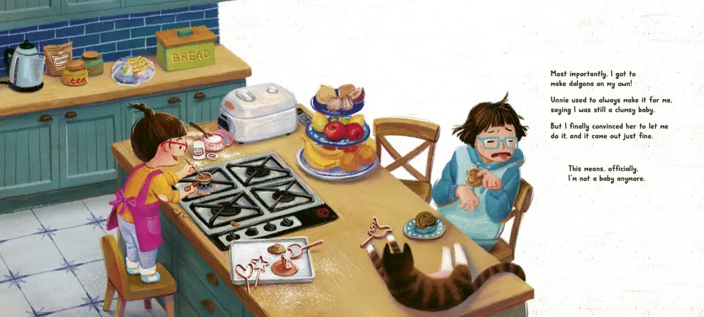 Binna’s finally starting to feel like she’s not a baby—she can read long books in English, beat her older sister at word games, and she can make dalgona by herself. But when she tries to tell her classmates about her weekend and the sugary, sandy treat she made . . . well, the English doesn’t come to her easily.