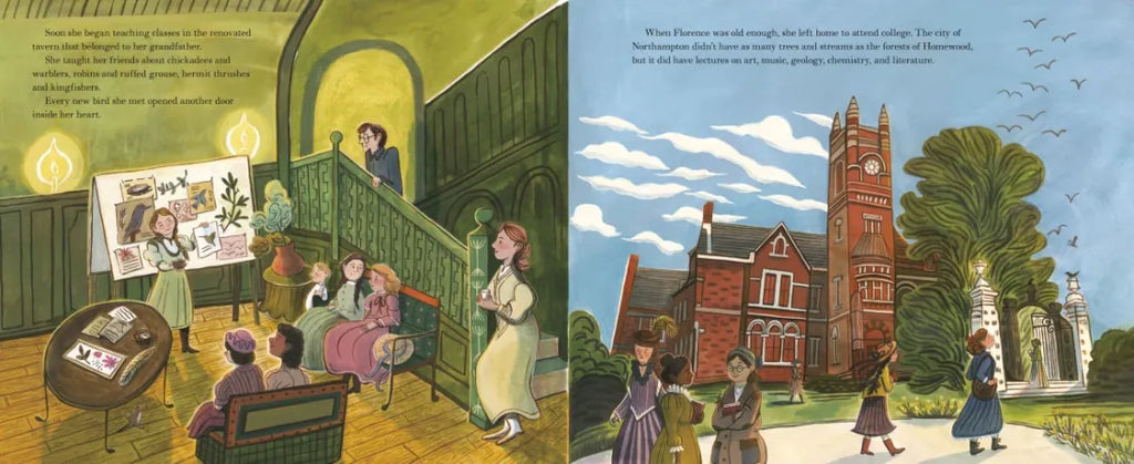 Before Florence, there was no such thing as "bird-watching". Bright plumes on lady's hats were all the rage, but no one was climbing trees or wading through marsh-grass to spot the birds they came from. Even scientists studied birds in labs instead of outside in their natural habitat.