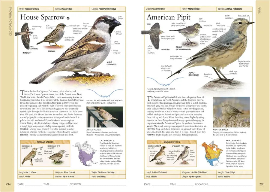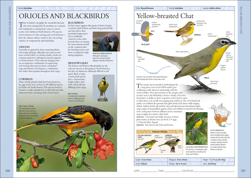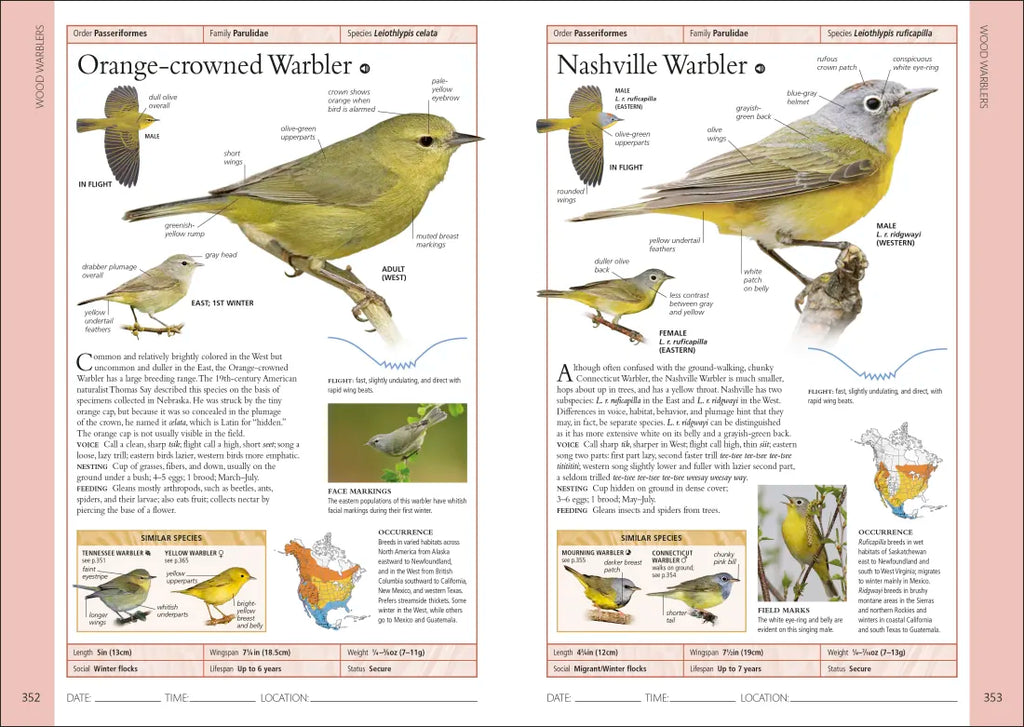- Up-to-date, color-coded maps highlighting resident and migratory distributions help spotters discover which species to expect when and where.