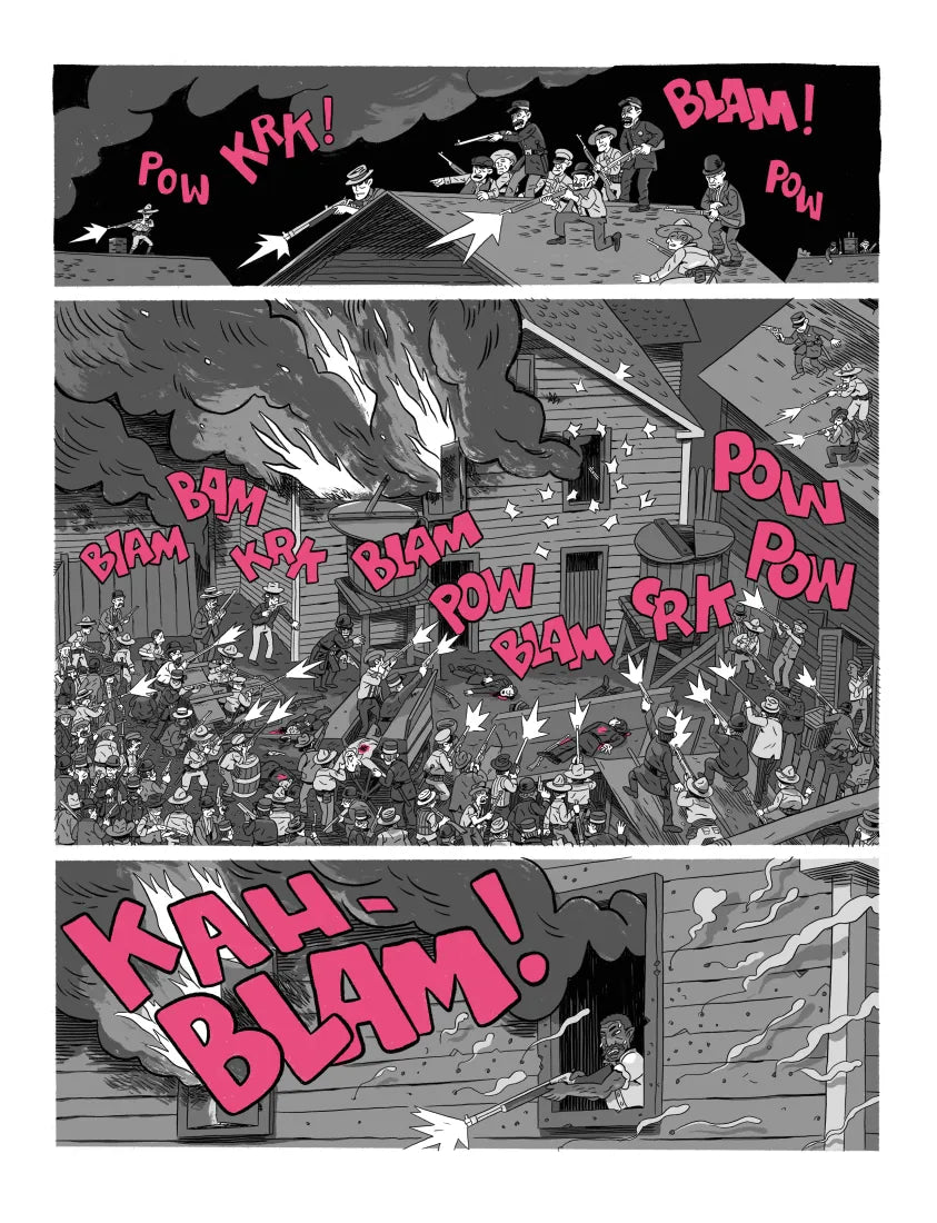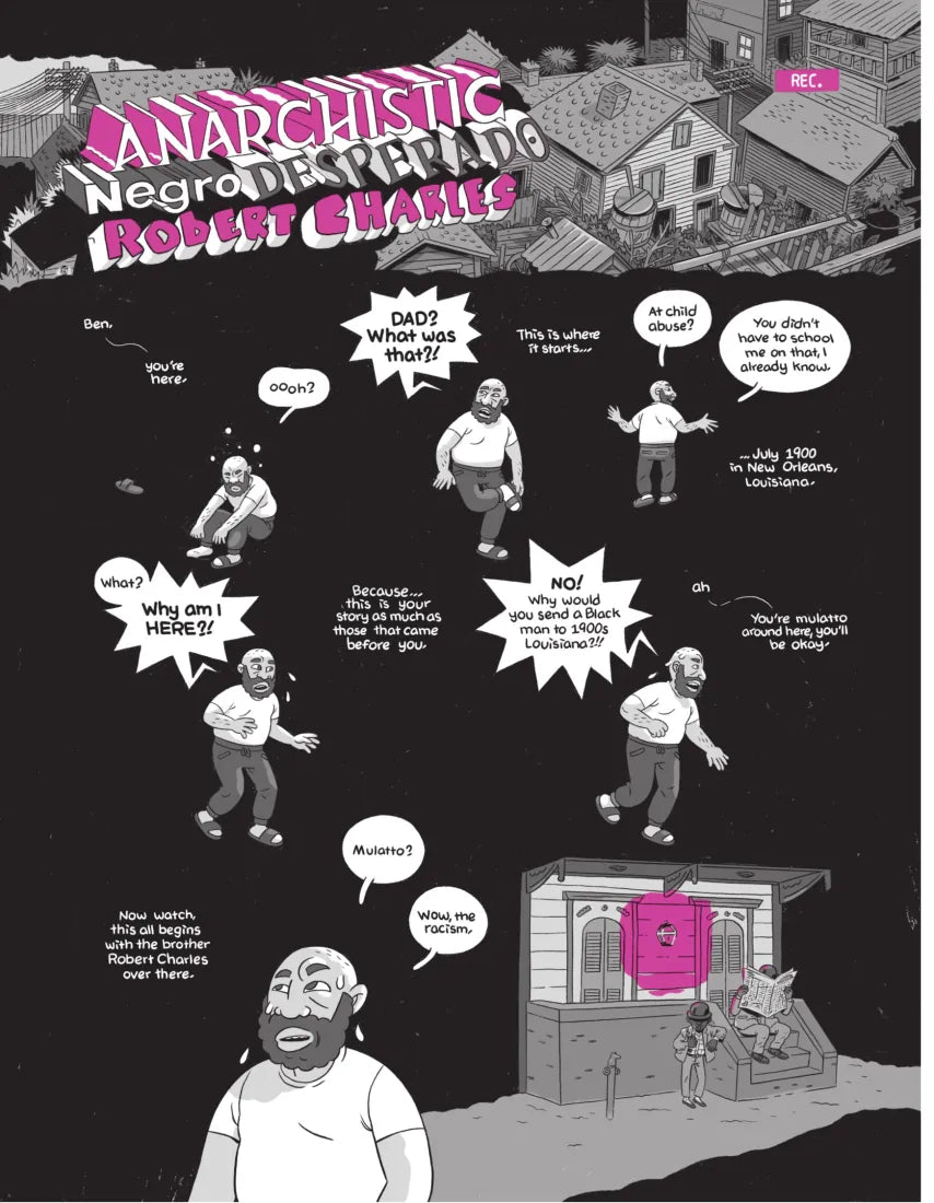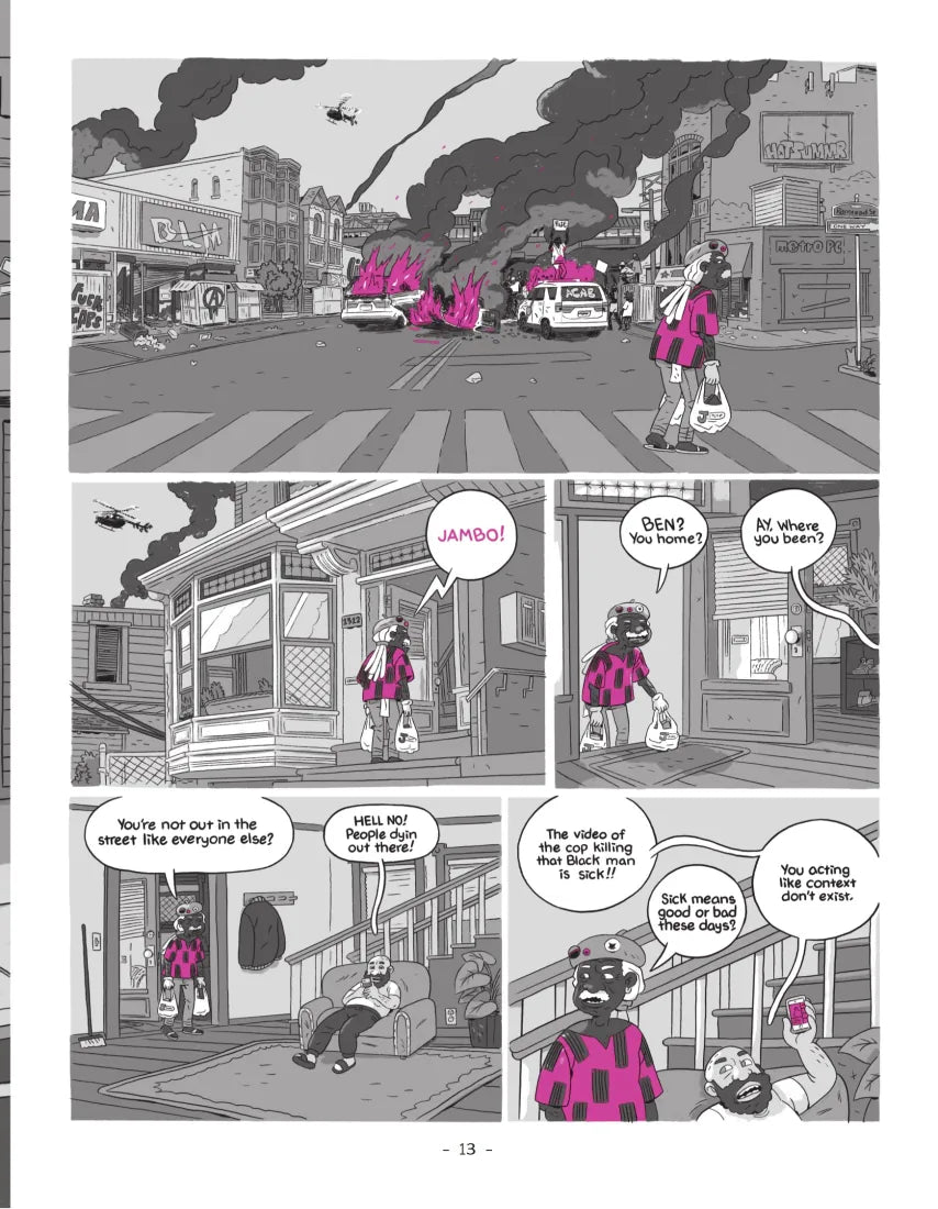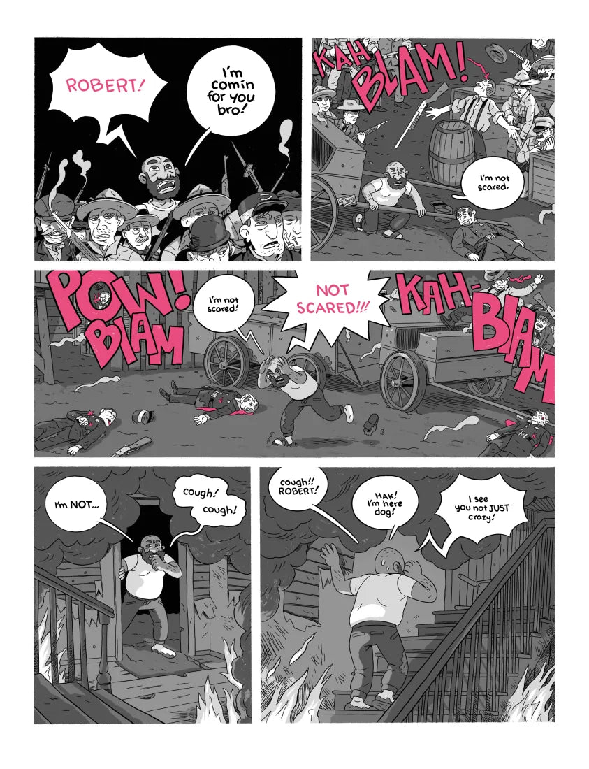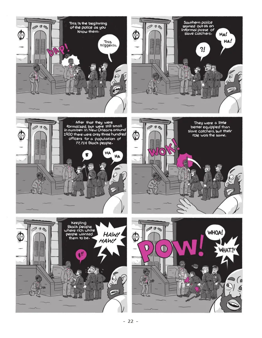 So begins Black Arms to Hold You Up, a boisterous, darkly funny, and sobering march through Black militant history by political cartoonist Ben Passmore. From Robert Charles’s shootout with the police in 1900, to the Black Power movement in the 1960s, to the Los Angeles and George Floyd uprisings of the 1990s and 2020, readers will tumble through more than a century of armed resistance against the racist state alongside Ben—and meet firsthand the mothers and fathers of the movement, whose stories were as tragic as they were heroic.