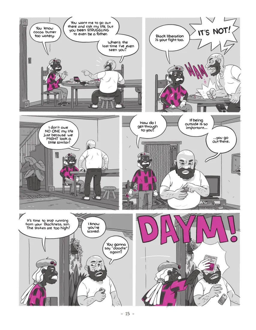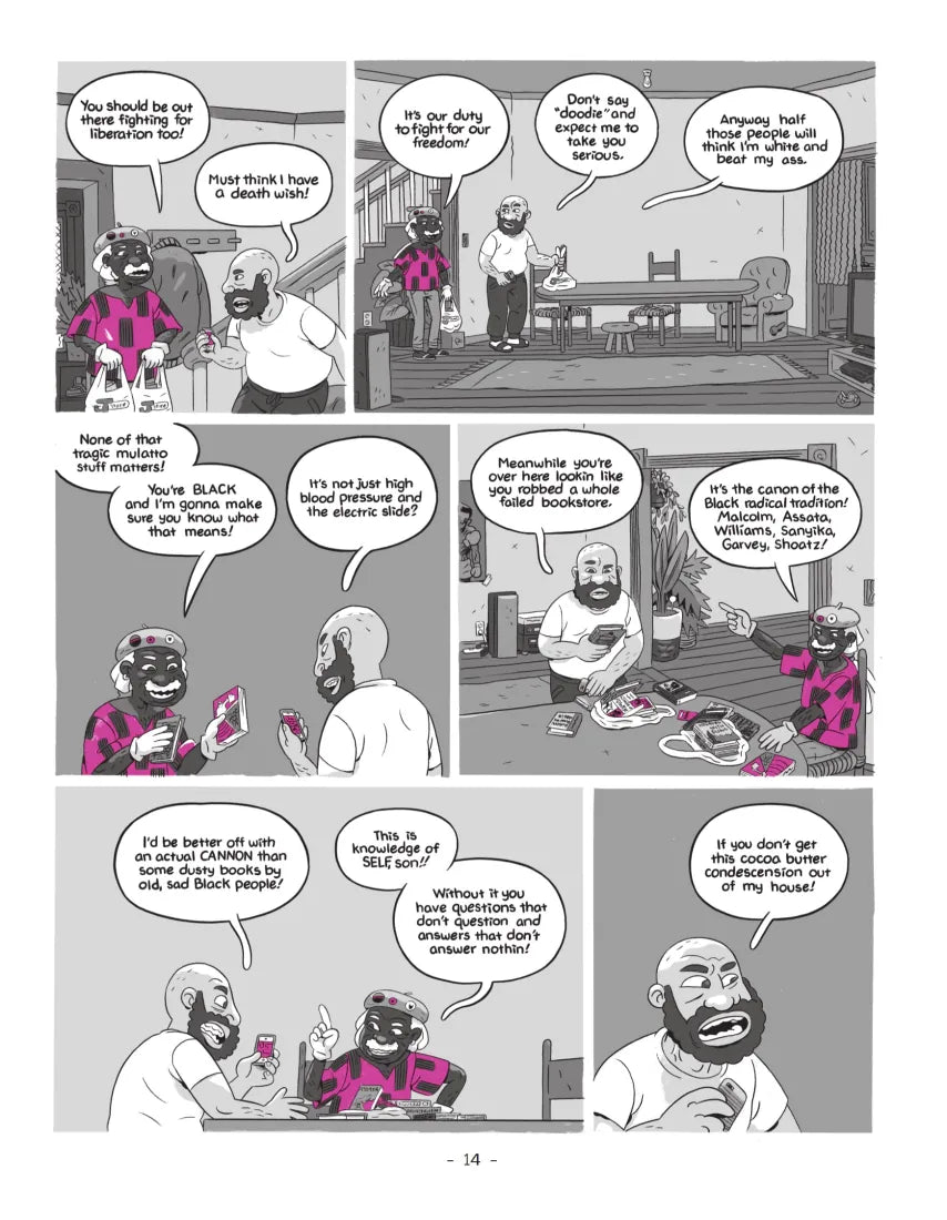 It’s the summer of 2020, and downtown Philly is up in flames. “You’re not out in the streets with everyone else?” Ronnie asks his ambivalent son, Ben, shambling in with arms full of used books: the works of Malcom X, Robert F. Williams, Assata and Sanyika Shakur, among others. “Black liberation is your fight, too.”