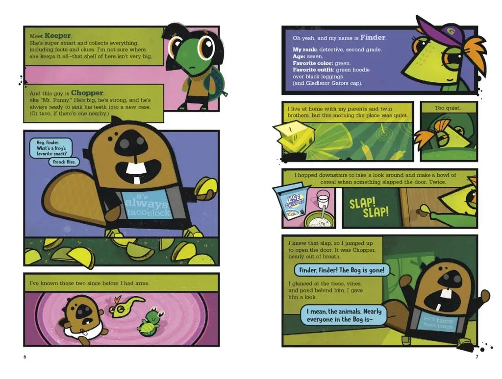 Meet detective-in-training Finder and her friends as they try to figure out why everyone in Belly Acre Bog has disappeared in this hilarious graphic novel mystery! Perfect for fans of The InvestiGators!