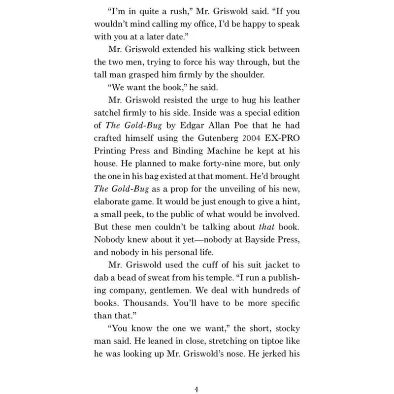 Racing against time, Emily and James rush from clue to clue, desperate to figure out the secret at the heart of Griswold's new game―before those who attacked Griswold come after them too.