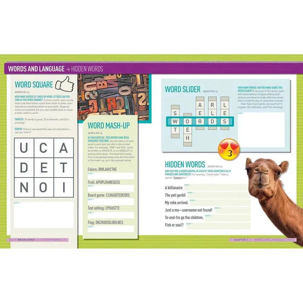 The activity book is a companion to the popular television show, book series, board game, and other Brain Games products.
