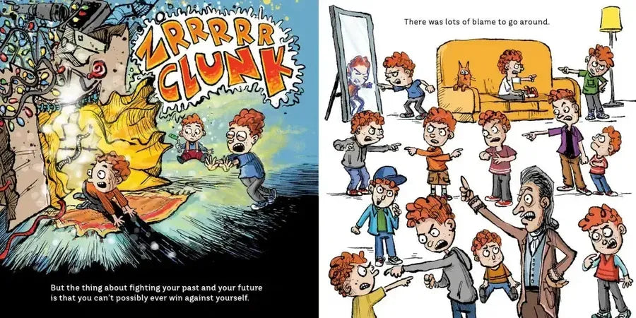 A fun, inventive romp of a picture book about a boy who travels back to yesterday to fix his homework but gets into a battle across time with his past and future selves, from award-winning author Seth Fishman.
