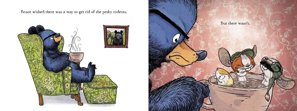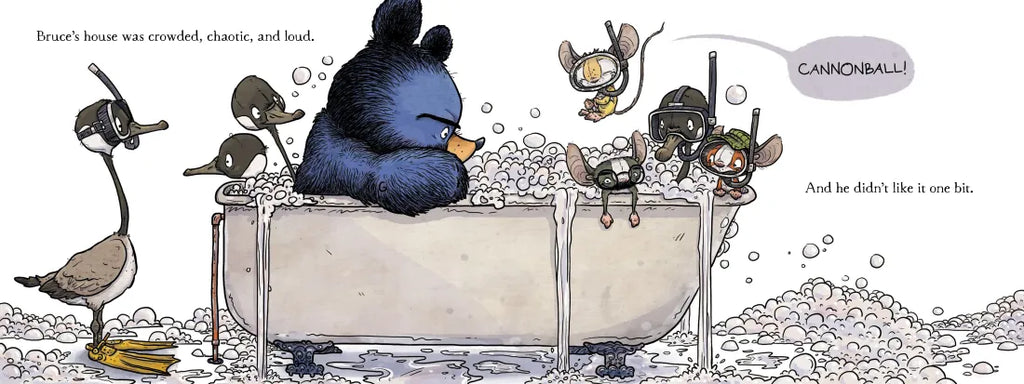 After the events of Hotel Bruce, our favorite curmudgeonly bear shares his home with not only his four geese, but three rowdy mice besides! Fed up with their shenanigans, Bruce sets off to find a rodent-free household. But as usual, nothing goes quite according to plan. . .