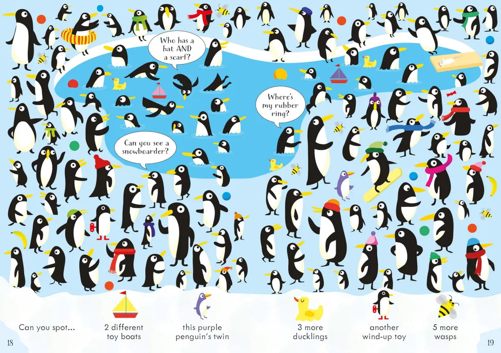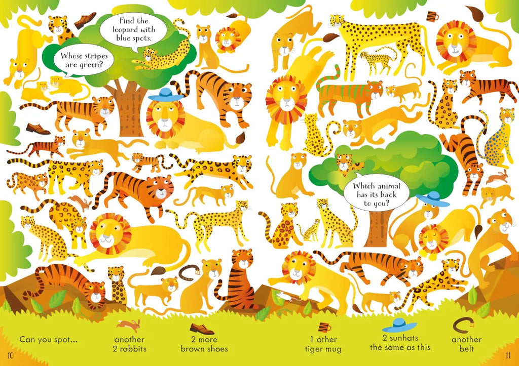 This lively book is teeming with zoo animals and other things to spot, match, count and talk about. At the bottom of each page is a row of pictures showing things to look for and count, while animals in each scene offer readers specific fun challenges, such as asking them to find a tortoise on a scooter. There is also a little white mouse to spot in each picture. Children will enjoy the challenge while parents can be confident that kids are practising essential skills.
