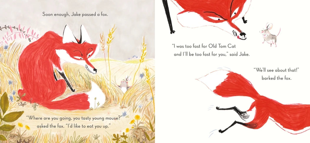“I’m the fastest mouse in the world!” Jake claims. “I’m like the wind. I am faster than lightning!” But will speed alone keep boastful Jake from being caught by a cat, a fox, a wolf, or a bear? “Can’t catch me!” he shouts. Well, clever Old Tom Cat will just have to see about that. . . . Expressive and energetic illustrations pair with a fun cumulative text in a mischievous story that begs to be read aloud.
