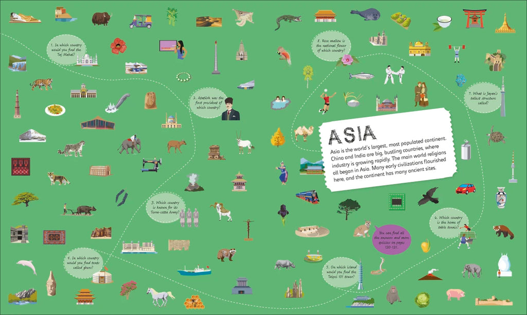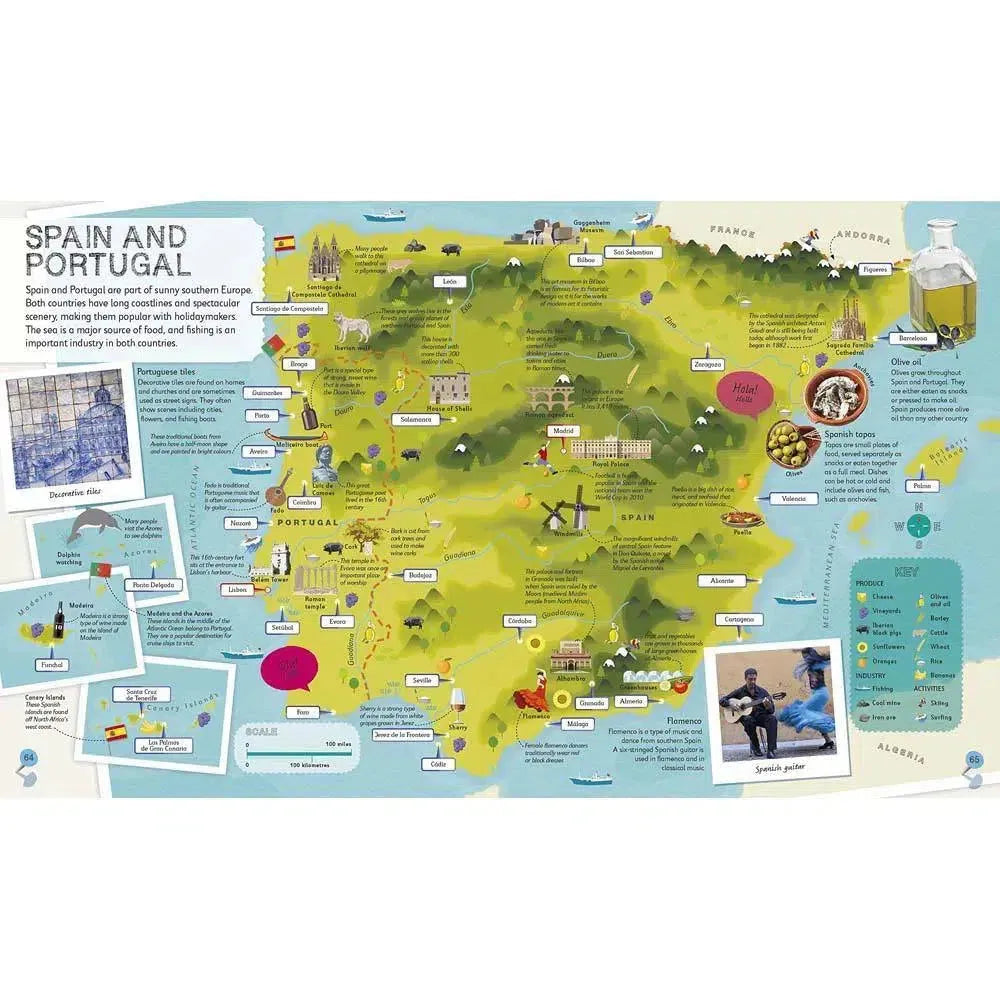 - More than 50 specially commissioned maps of the world featuring countries and continents in full-color detail.
