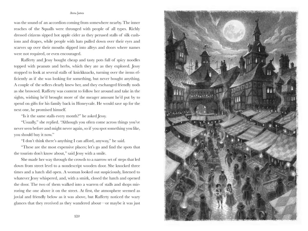 As Juniper learns how to wield enchantment and hone her magic, Rafferty becomes involved with a mysterious secret society that meets after dark. Monsters are creeping out of the shadows and dangers lurk in unexpected places. Amid night markets and magic lessons, the twins realize there is more to enchantment than they ever imagined. And when dangerous monsters attack, the adventure that follows brings Juniper's and Rafferty's paths together again in ways they could never have expected . . .