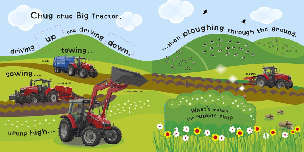 In Chug Chug Tractor, young readers are presented with a high quality reading experience with exciting novelties including vehicle and animal sounds, touch-and-feel panels, intriguing flaps, and remarkable pop-outs. Combined with bright photographs and entertaining rhyming text, Chug Chug Tractor offers a hands-on, interactive learning experience. Word labels name interesting images in each scene, like the parts of a vehicle, the names of an animal, or the type of building, and provide talking points for parent and child.