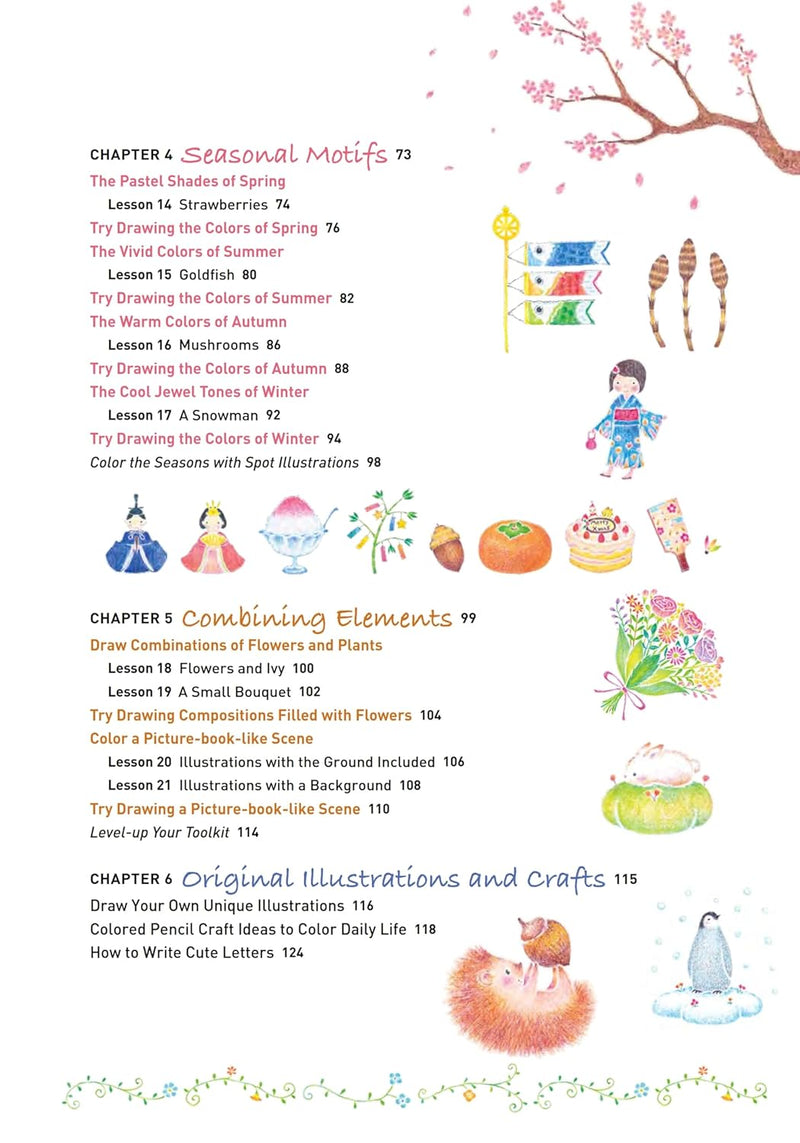 Transform your journals, cards, gifts and place settings into a "canvas of cuteness" with adorable colored pencil drawings. There's no need for expensive art supplies―these delightful doodles are brought to life with just 12 inexpensive pencils! The whimsical examples in this book will get you excited about drawing everything from baguettes and mushrooms and cherry blossoms to bluebirds, macarons, calico cats and more―including holiday motifs and colorful lettering!