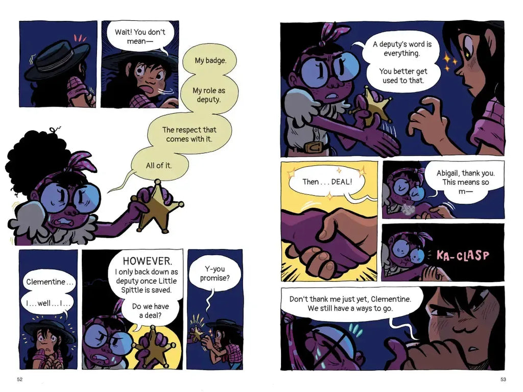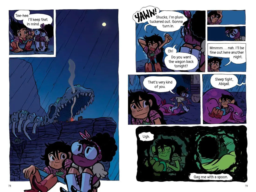 But when the Bandit Queen gets a hold of some dark magic, the town and the sheriff are nowhere to be found. It’s up to Clem, Abigail, and Rootbeer to team up, defeat the Bandit Queen, and save their beloved town from bandits, dinomagik, and undercover attacks.