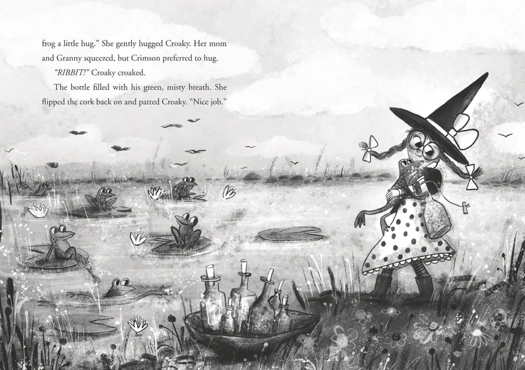 Crimson Twill’s new friends from New Wart City, Mauve and Wesley, are coming for a visit! But as soon as they arrive at Crimson’s house in Cackle County, things start to go wrong. At the rotten apple orchard, Crimson’s ripening spell goes horribly awry (what will they do with all that rotten applesauce?). Then, at the broom-straw field, Wesley cuts too much straw and starts to float away. And when the friends try to collect frogs’ breath for their spells (it makes everything wonderfully green and warty), Mauve gets a stinky faceful of it! What on earth is going on? The whole countryside feels like something big is about to happen, and Crimson wonders if it has something to do with Granny Twill and that giant cauldron of stew she made. Can Crimson get to the bottom of this bad-luck mystery? And, more importantly, will her city friends ever want to visit her again?