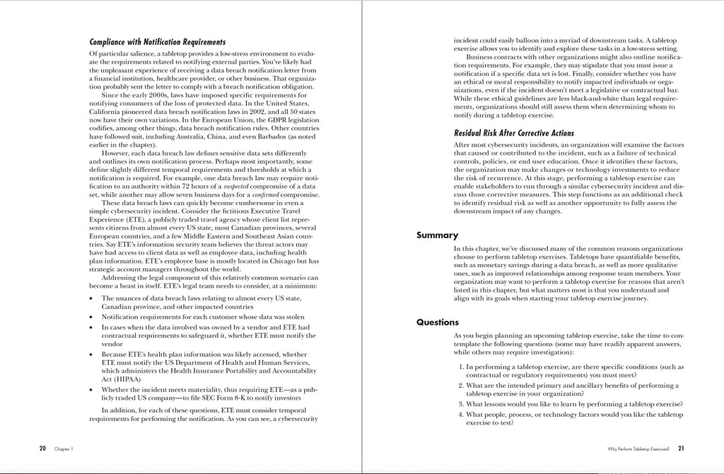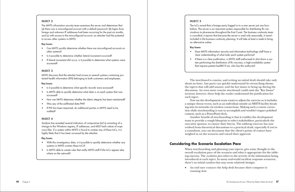 The book is divided into two main parts. In Part I: The Tabletop Exercise Process, you’ll learn: