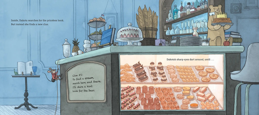 In a second rollicking adventure, petite mouse treasure-hunter Dakota Crumb has been summoned abroad for a top-secret mission: to help her cousin locate a rare and priceless book. Armed with a mysterious note and clues to guide her through the unexpected perils of a charming Parisian bookshop, Dakota uses her sharp eyes and a knack for scaling heights to make a surprising discovery: a roomful of fellow mice gathered to celebrate—her! Readers will revel in a seek-and-find challenge that sends them back to pore over dynamic spreads in search of even more treasures.
