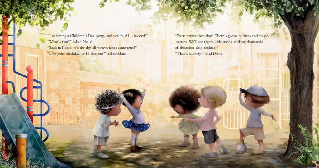 Thrilled to invite her friends to celebrate Children's Day as she did in Korea, she promises kites, tigers, and magic train rides. But when the reality of a picnic behind her parents' deli falls short of her grand plans, Danbi must get creative to save the day.