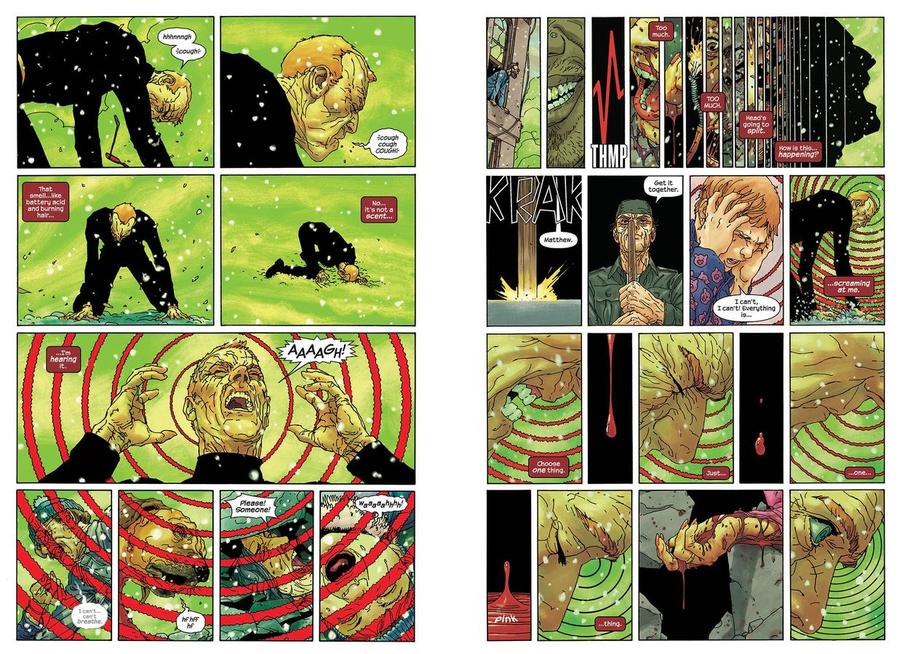 In a future where heroes have fallen and New York lies in ruins, an aging MATT MURDOCK has left his days as DAREDEVIL behind. But when CAPTAIN AMERICA entrusts him with one last mission, Matt is forced back into a war he thought he’d left forever. His powers flicker unpredictably, his body is frail, and the enemy he must face—a grotesque, relentless BULLSEYE—is deadlier than ever. Joined only by the innocent lives caught in the crossfire, and with fleeting moments of strength to guide him, Daredevil must decide what still keeps him fighting: his faith, his sense of justice, or simply the refusal to let evil rule unchecked.