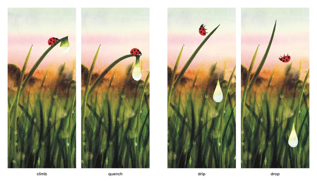 As the sun slowly rises, many things happen in a small window of time. The world comes alive with the actions of animals, plants, clouds, and sky. A deer drinks, an owl wakes, a dandelion shimmers in the light. A ladybug climbs, a fish jumps, birds call in a chorus. Geese fly away in formation. A flower blooms. Beautifully illustrated with glowing imagery and written with a charming simplicity holding appeal for new readers, Marc Martin’s ode to the slow-blooming beauty of a sunrise and the life that unfolds in its radiance narrows the lens to show the wonder of time passing.