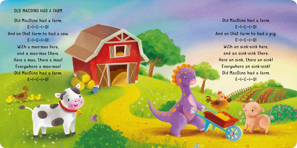 The fourth book in the Dinosaur, Dinosaur series, Dinosaur, Dinosaur Had a Farm is a collection of popular and original barnyard rhymes with a fun dinosaur twist, perfect for sharing with a little one at story time. Rhymes include "Old MacDino Had a Farm," "Dino Had a Little Lamb," "Dino in the Dell," and many more! This is a follow-up to Dinosaur, Dinosaur, Say Good Night; Dinosaur, Dinosaur, I Love You; and Dinosaur, Dinosaur, Fall Is Here!. The soft padded covers make for a cozy, comfy read with little ones.