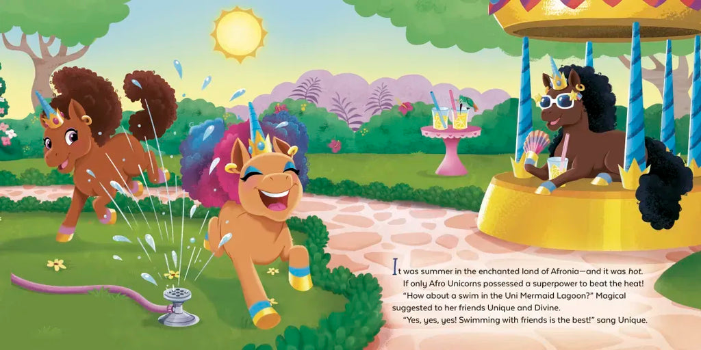 Perfect for little ones learning to swim, this Afro Unicorn story is about friends coming together to help one another overcome their fear of the water!