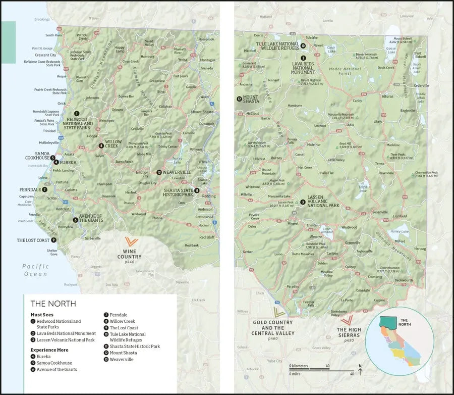 - Covers: Los Angeles, South Central California, Orange County, San Diego County, The Inland Empire, and Low Desert, The Mojave Desert, San Francisco, and the Bay Area, The North, Wine Country, Gold Country and the North, Central Valley, The High Sierras, North Central California
