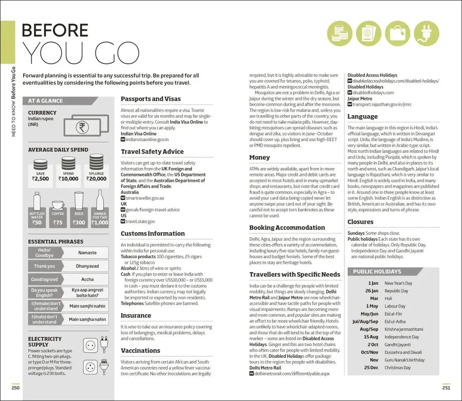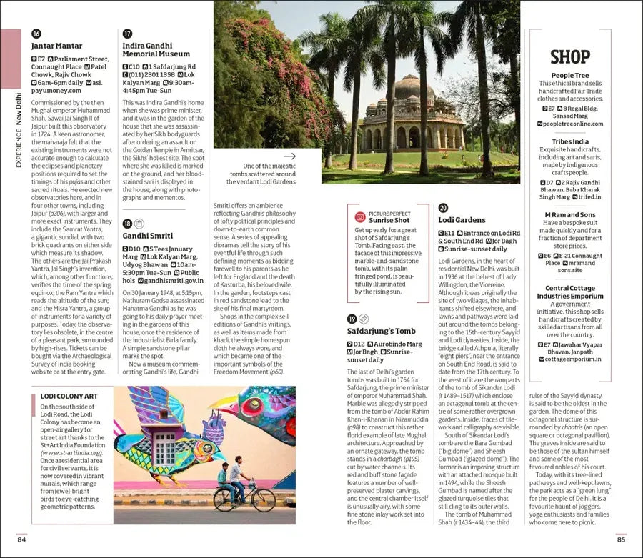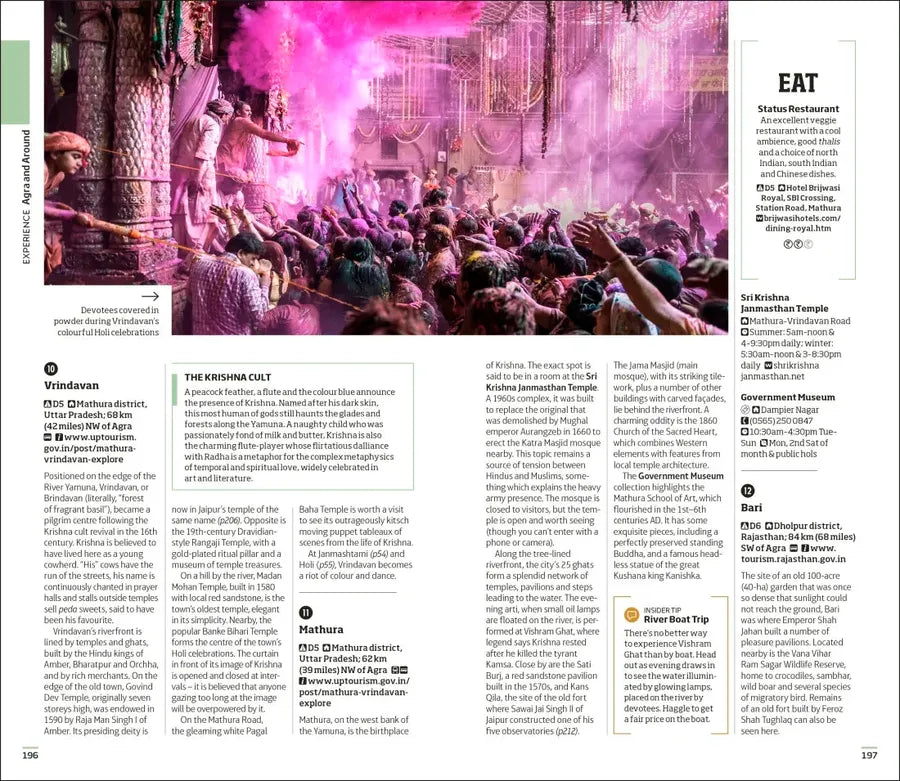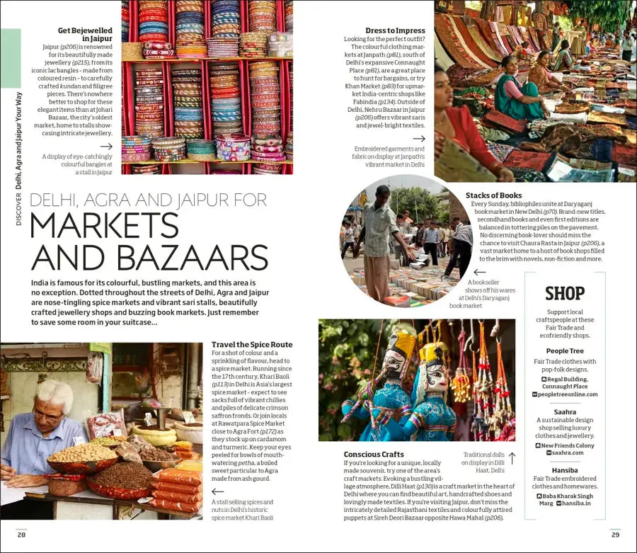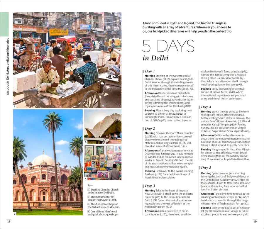 -Color-coded chapters to every part of Dehli, Agra and Jaipur and beyond, from the Red Fort to the Taj Mahal, Keoladeo Ghana National Park to Corbett National Park.