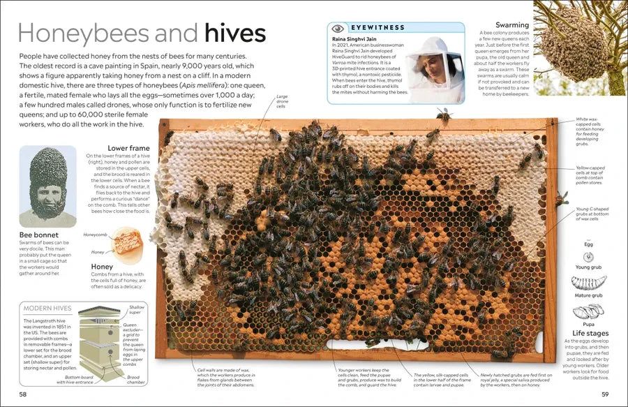 Become an eyewitness to the many different varieties of insects in this picture-led reference guide that will take you on a visual tour of the world of creepy-crawlies. Children will be mesmerized by their different varieties, body-structures, life cycles, and behaviors – from why bees make honey to which insects have ears on their knees.