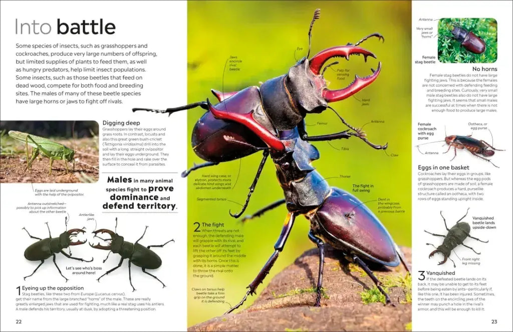 Eyewitness Insect features striking full-color photographs of dueling stag beetles locked in combat, a wasps' nest under construction, and an adult damselfly emerging from its old skin that will easily lure children into the fascinating world of creepy-crawlies.