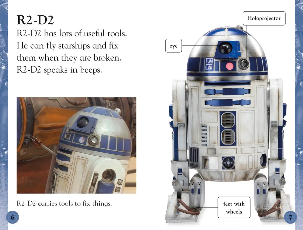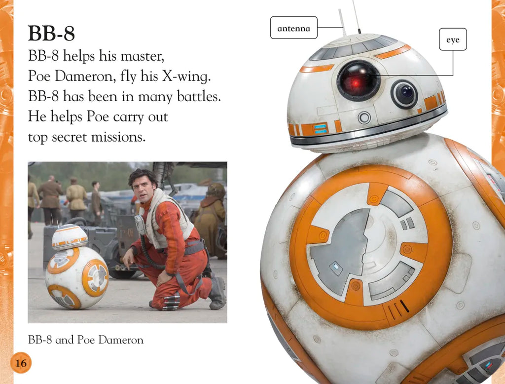 Featuring high-quality images from the smash-hit movies and TV series, this Level 1 Reader takes a close look at the coolest droids in the Star Wars galaxy, from new favorites BB-8 (Star Wars: The Force Awakens), K-2SO (Star Wars: Rogue One), and Chopper (Star Wars: Rebels) to treasured old friends from the classic saga C-3PO and R2-D2.