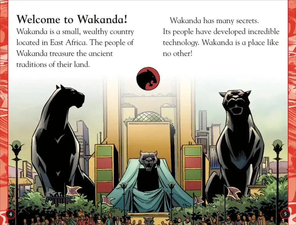 Explore Black Panther's mighty Kingdom of Wakanda, the most advanced country on Earth! Meet Black Panther's friends and allies, including his brainy sister Shuri, and his brave bodyguards - the Dora Milaje.