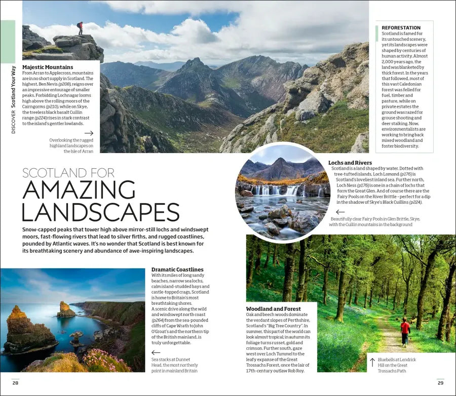 Our updated guide brings Scotland to life, transporting you there like no other travel guide does with expert-led insights, trusted travel advice, detailed breakdowns of all the must-see sights, photographs on practically every page, and our hand-drawn illustrations, which take you inside the country’s buildings and neighbourhoods.